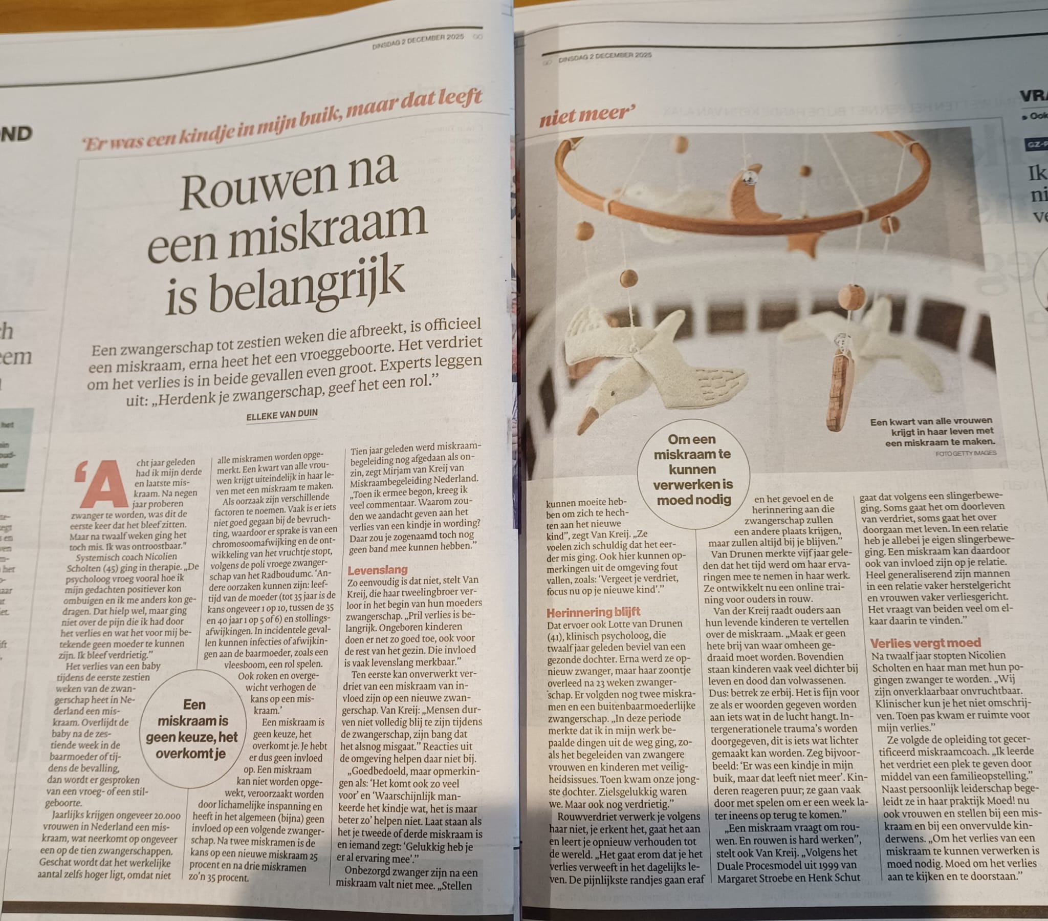 Algemeen Dagblad – 1 op de 4 vrouwen krijgt een miskraam, rouwen is belangrijk